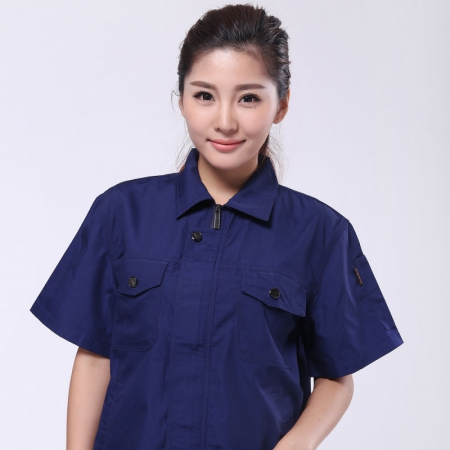 苏州鹰诺服装:深兰色短袖工作服AD04
