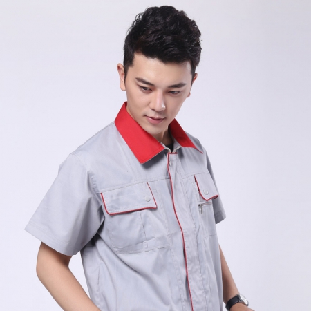 苏州鹰诺服装:清灰拼银灰全棉夏季工作服AD06-2
