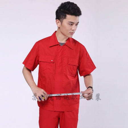 苏州鹰诺服装:藏青拼大红夏季工作服AD103