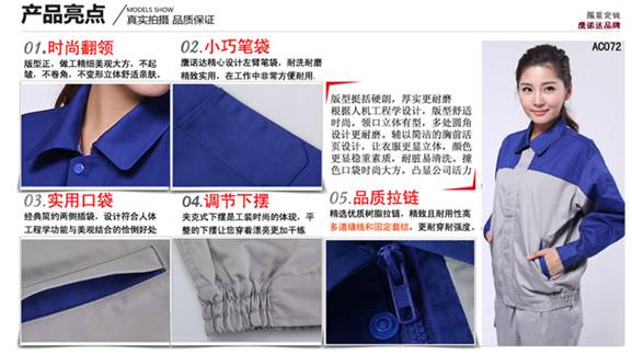 < 左边图片为鹰诺达工作服细节展示:
