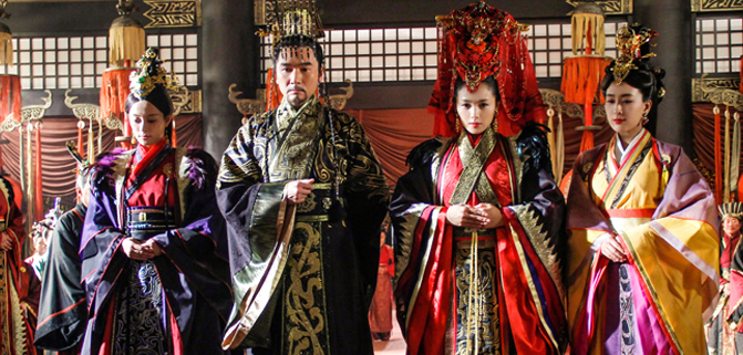 说过了颜色,让我们来看一下衣服的样式。战国时候的楚国、秦国最流行什么样式的服装呢?答案是“连身衣”,哦,错了,按当时的叫法应该是深衣和袍服。这种 衣服是上下分开裁剪,而后缝合在一起,二者的区别在于深衣是单衣,袍服里有丝棉。战国时期,各诸侯国都十分流行深衣,这也是《芈月传》中的常见样式。