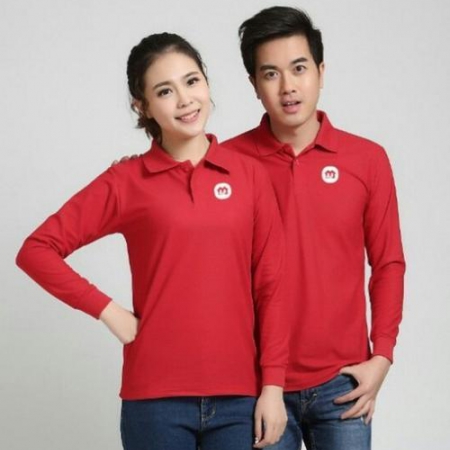 苏州鹰诺服装:大红配浅灰涤棉纱卡商场工作服AC078-CS