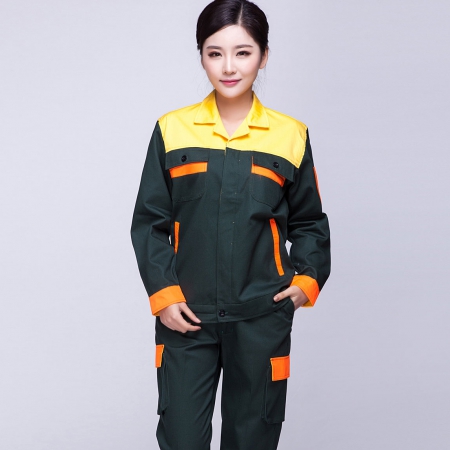 邮电绿拼黄色橘黄秋季工作服AC03-3