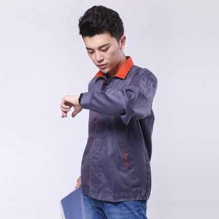苏州鹰诺服装:中灰拼橘黄色春秋工作服AC116-CQ