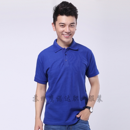 艳兰色纯棉双丝光紧身短袖T恤工作服 ID269-TX