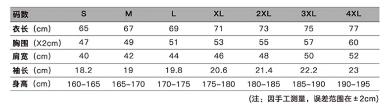 本产品共8个尺码:XS、S、M、L、XL、2XL、3XL、4XL 覆盖99.5%的人群。查看尺码表>