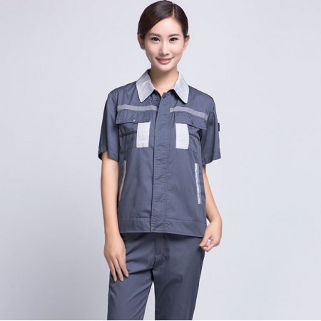 苏州鹰诺服装:灰色拼藏青夏季工作服AD089