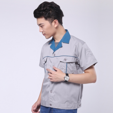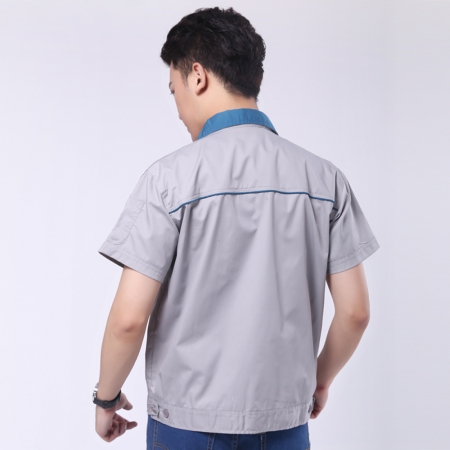 苏州鹰诺服装:深蓝配桔红工作服AD069