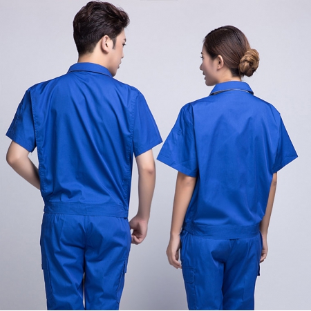 苏州鹰诺服装:深蓝配桔红工作服AD069