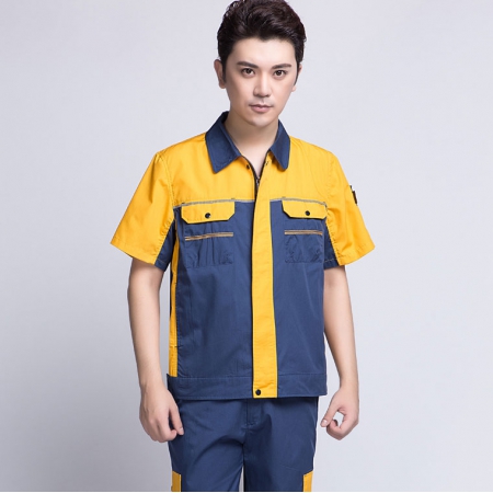 苏州鹰诺服装:墨绿拼黄色夏季工作服AD08-3