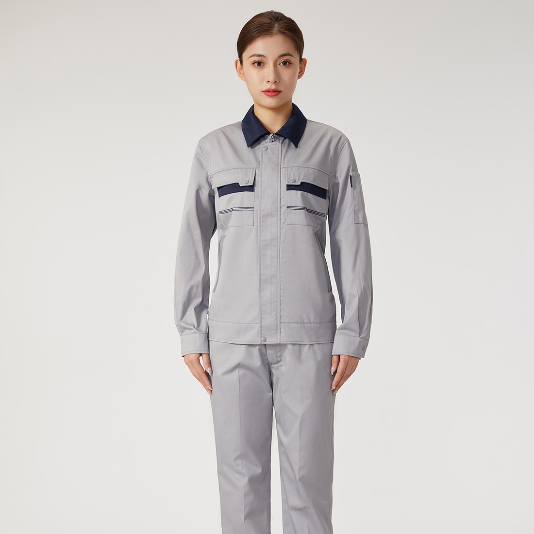 苏州鹰诺服装:湖蓝拼浅灰工作服AC20-2