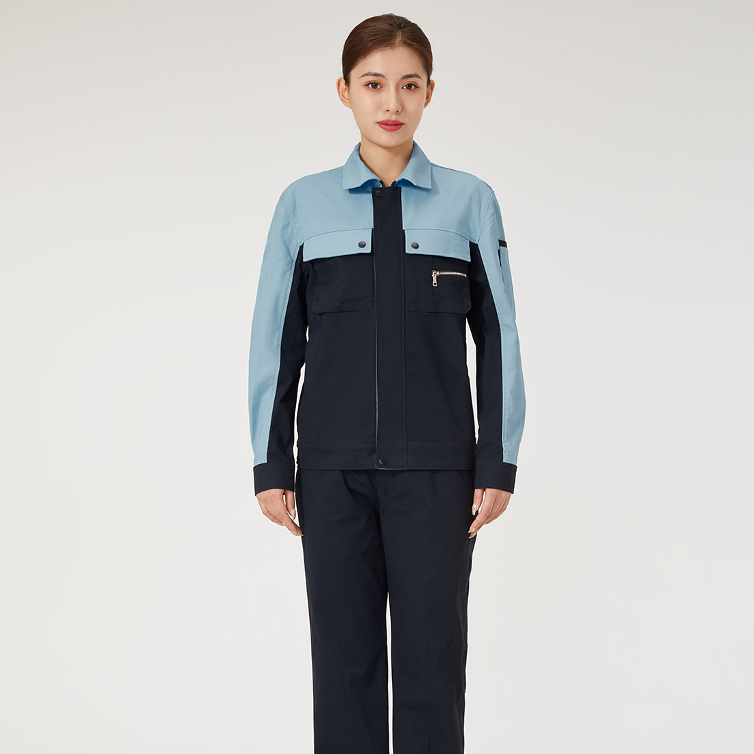 湖蓝拼浅灰工作服AC20-2