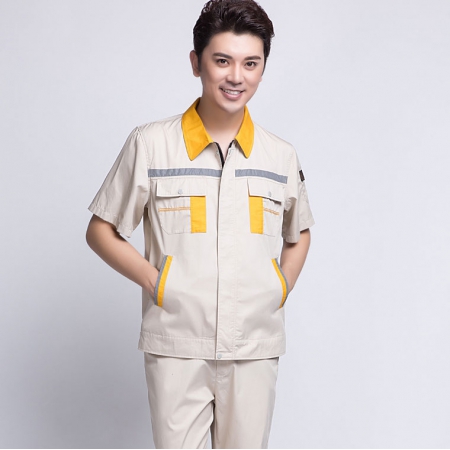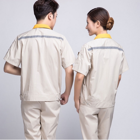 苏州鹰诺服装:浅灰拼绿色全棉工作服AC121-CQ