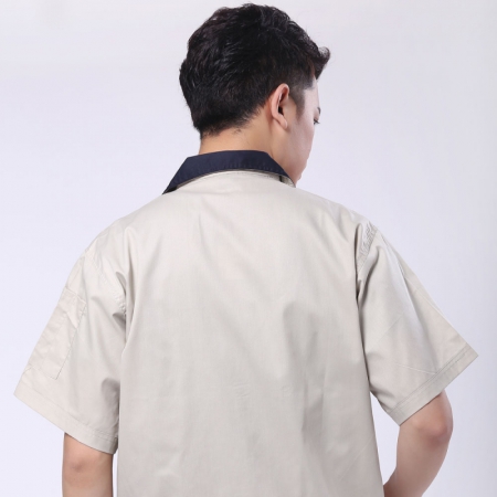 苏州鹰诺服装:米色拼藏青CVC纱卡春秋工衣AC112