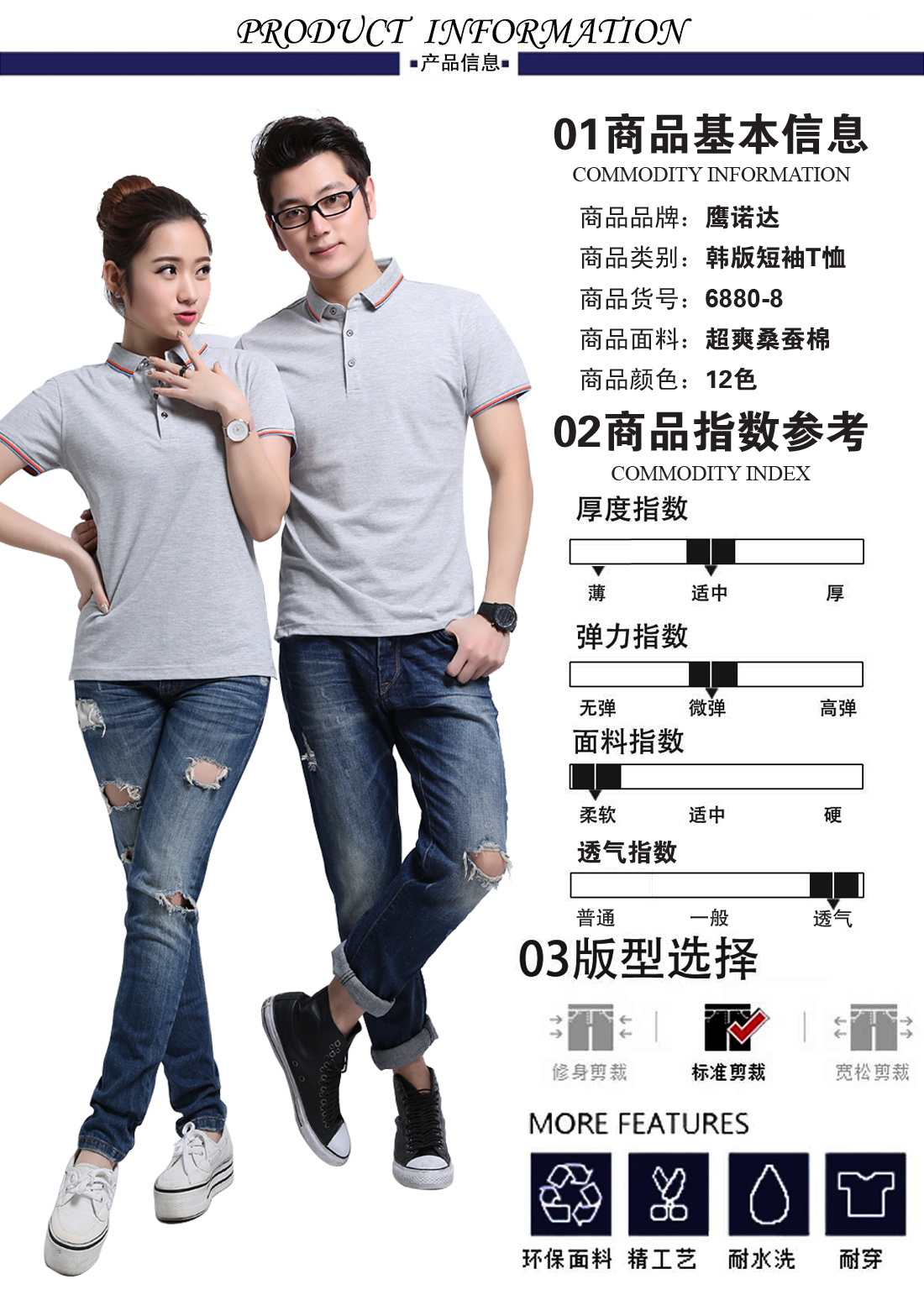 苏州鹰诺服装:桑蚕棉t恤衫工作服ID6880