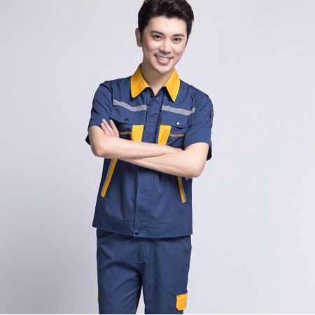 苏州鹰诺服装:深蓝配桔红工作服AC069