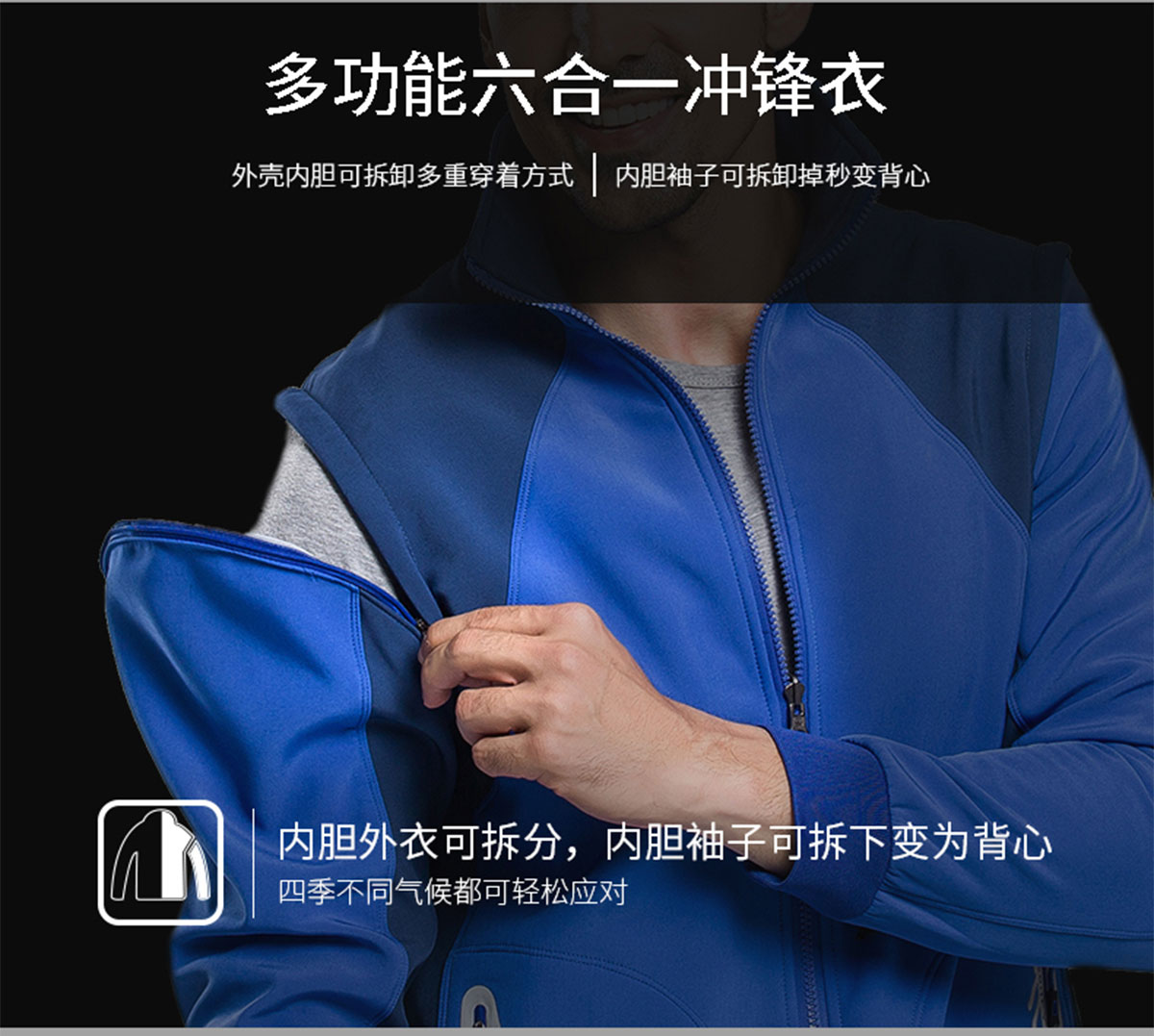 常熟冲锋衣六合一冲锋衣的特点不同颜色的常熟冲锋衣冲锋衣批发厂家苏州鹰诺服装展示