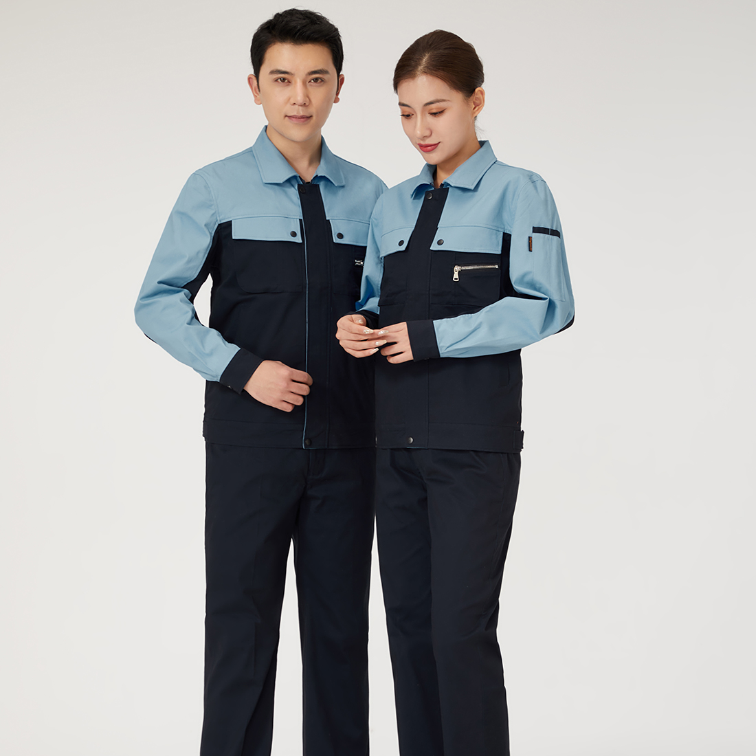 米色拼藏青工作服AC112