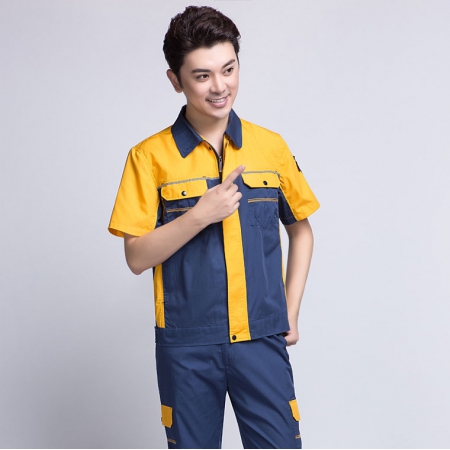 苏州鹰诺服装:黄拼驼色工作服AC20-4