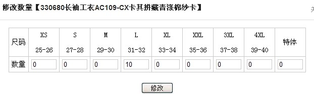 第③步:修改产品尺码及数量 返回顶部