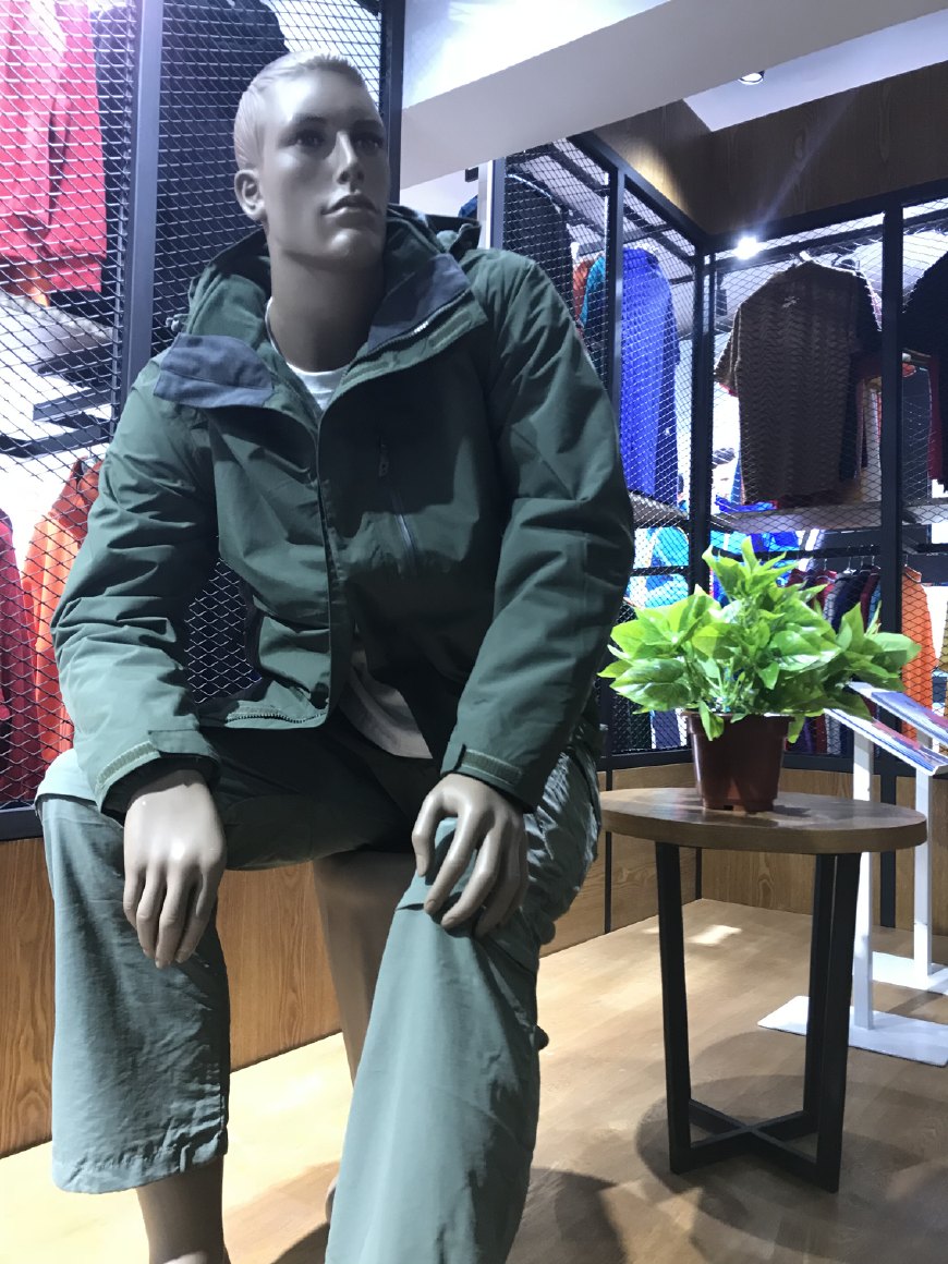 聚拓冲锋衣展厅以网结构钢材展架为主,充分展示运动风格和精髓。要更淋漓尽致的展现运动主题,那么展厅装饰就需要更多的运动元素。因此我们选择了运动装备配件作为点缀,让运动的元素更加丰富。