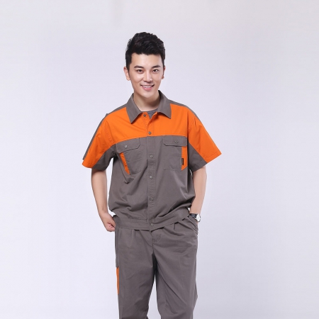 银灰拼红色短袖工作服AD064-DX