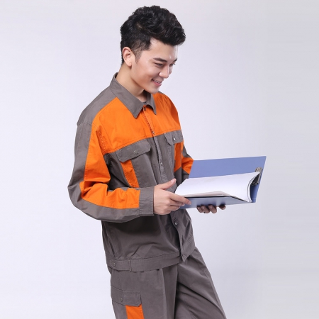 苏州鹰诺服装:中灰拼橘黄色春秋工作服AC116-CQ