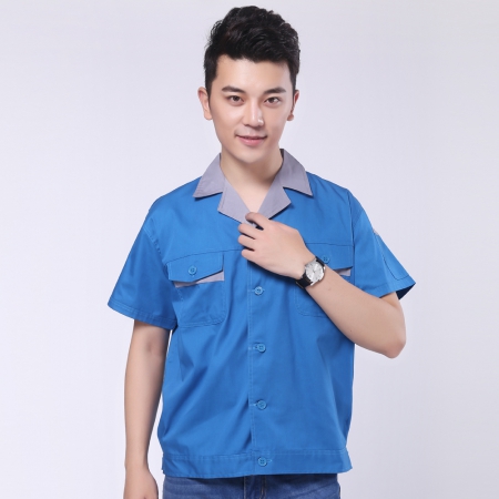 苏州鹰诺服装:浅兰拼浅灰短袖工作服AD120-DX
