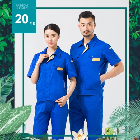 艳蓝配浅灰夏季工衣定制AD081-XJ