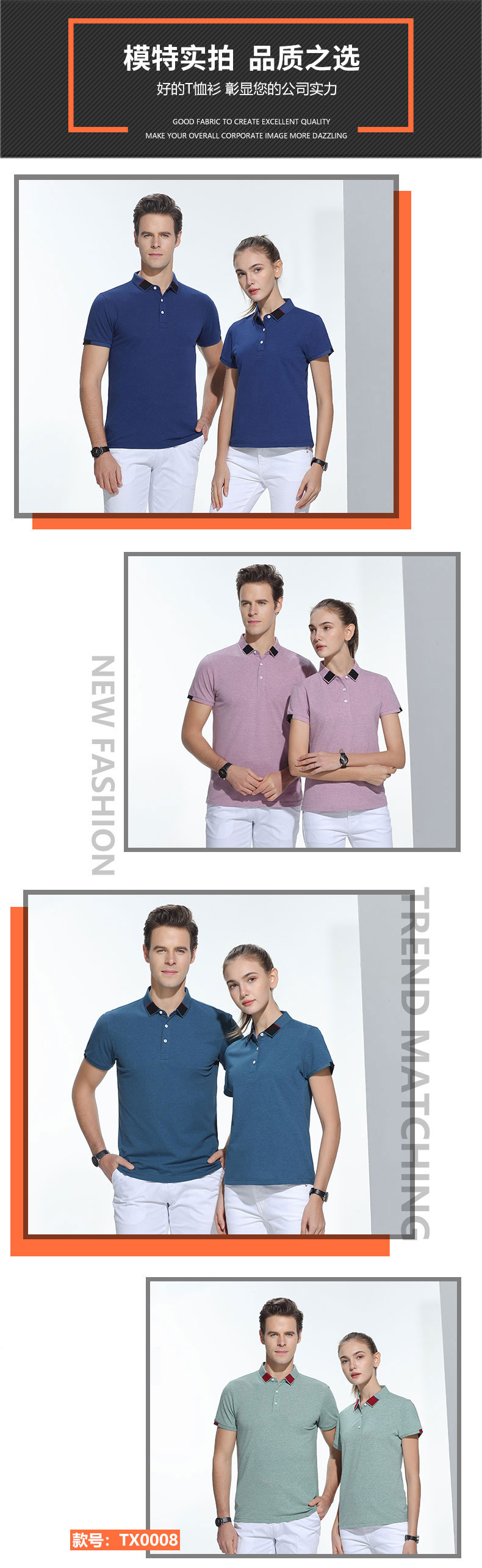 彩棉魔方领超爽纤维团体t恤衫TX0008-3