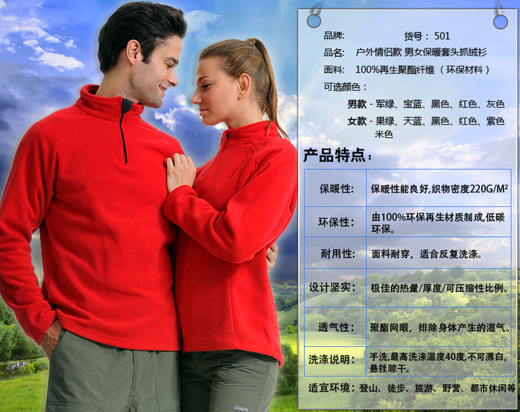 男女情侣可套穿舒适保暖抗静电抓绒衣ZRY501