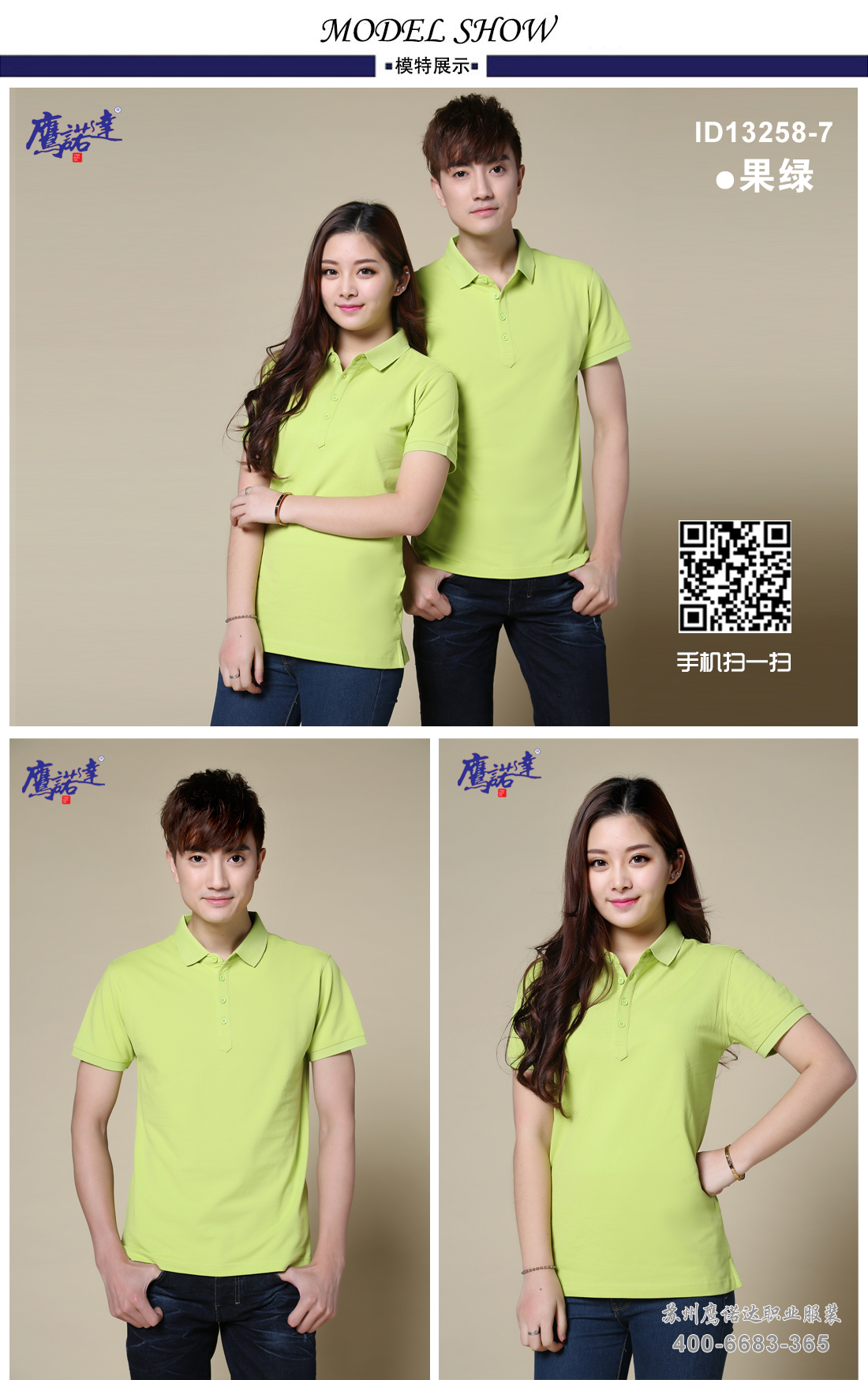 果绿纯棉莱卡t恤衫工作服ID13258-7
