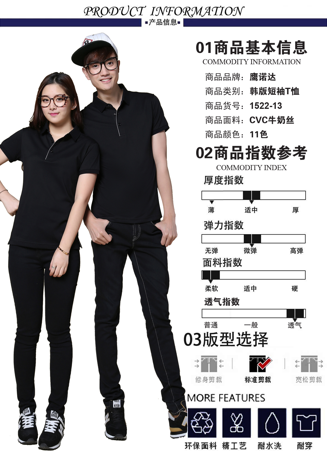 黑色翻领CVC牛奶丝Polo衫ID1522-12