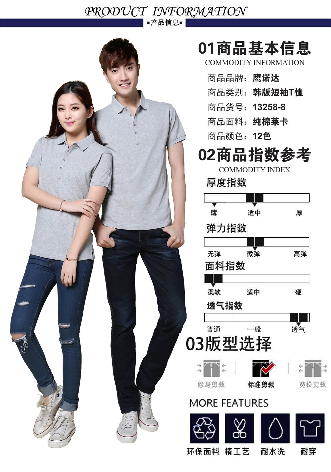 • 材质:全棉莱卡