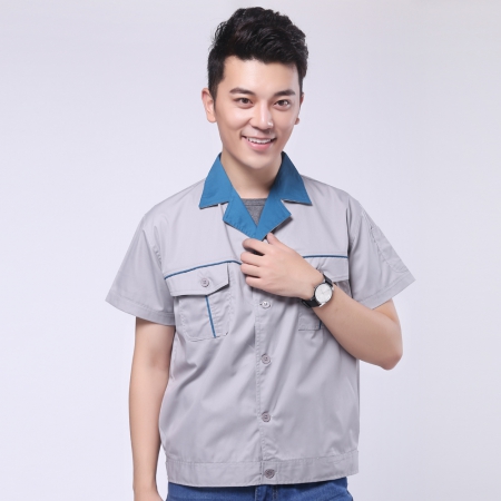 苏州鹰诺服装:湖蓝拼浅灰工作服AC20-2