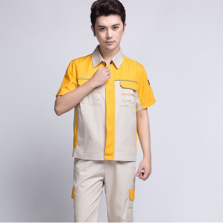 苏州鹰诺服装:黄拼驼色工作服AC17-4